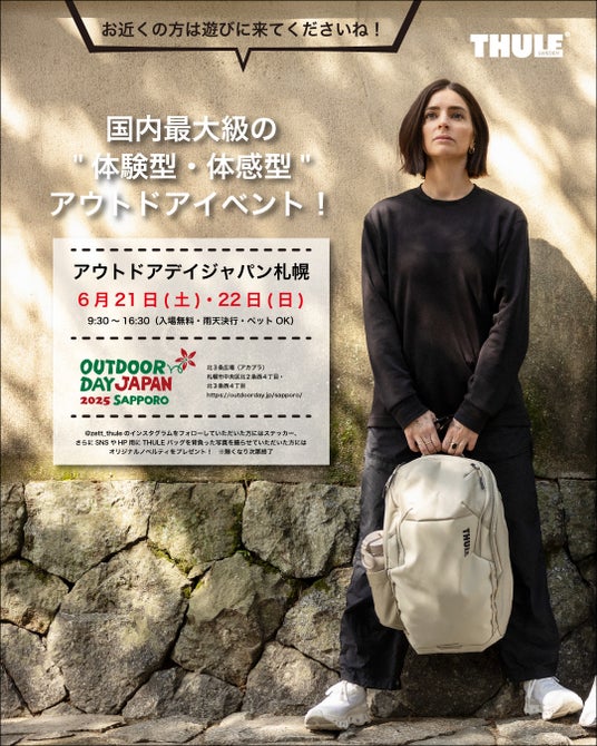 ゼット株式会社(本社/大阪市天王寺区、代表取締役社長/渡辺裕之)が取り扱うスウェーデンのブランド『THULE』(スーリー)は、2025年6月21日(土)から22日(日)に北海道・北3条広場(アカプラ)で開催される「アウトドアデイジャパン札幌2025」に出展します。