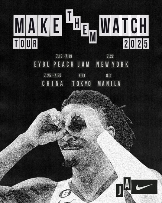 「Make Them Watch Tour」は、ジャ・モラント選手とナイキがバスケットボール界に貢献するという強い想いを体現するものです。アスリートを支援し、次世代にインスピレーションを与え、世界のバスケットボールカルチャーをさらに活性化させることを目的としています。またこのツアーは、バスケットボールの力が国と国を結び、若いアスリートたちに夢を追いかける力を与え、アスリートやファンの間に永続的な影響を生み出すという、両者の共通した信念に基づいています。