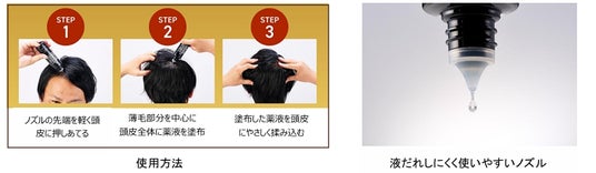 毎日使用する育毛剤だからこそ、使用感にも徹底的にこだわり、塗布時に液だれしにくいノズル、ベタ付きを抑える処方設計にしています。地肌のことを考えた弱酸性で、パラベン、シリコーン、着色料は使用していません。