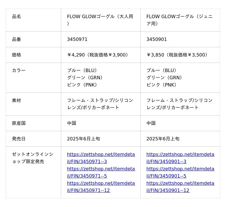 ゼット株式会社(本社/大阪市天王寺区、代表取締役社長/渡辺裕之)が取り扱う『FINIS』(フィニス)ブランドは、暗闇で光るゴーグル【Flow Glowゴーグル】の大人用とジュニア用をゼットオンラインショップ限定で発売しました。
