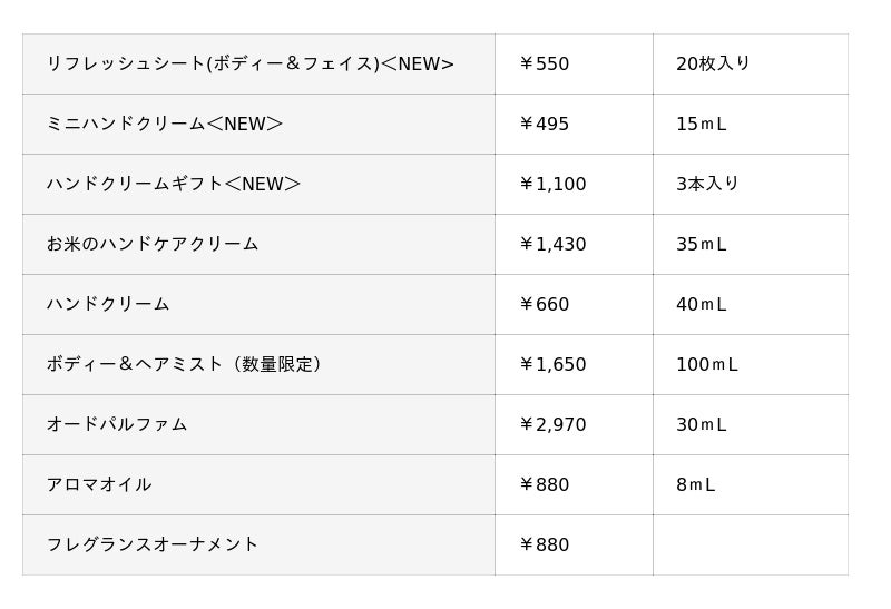 ゆるりと薔薇実ラインアップ(価格は税込)
