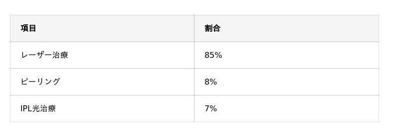 メンズシミ取りの施術はレーザー治療(85%)が大半を占めました。次いでピーリング(8%)、IPL光治療(7%)という結果です。