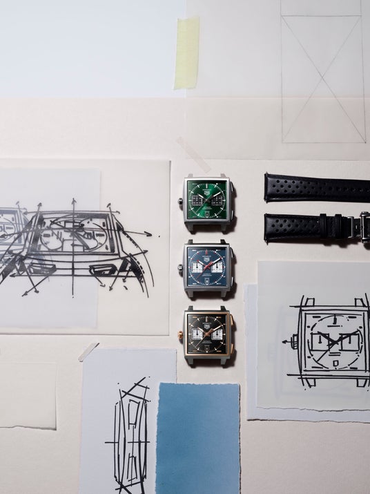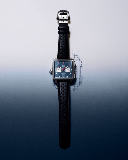 誕生以来、「モナコ」は、常に他とは一線を画す存在であり続けてきました。サテン仕上げとポリッシュ仕上げを組み合わせた角型ケースは、シャープなラインと印象的な幾何学的造形によって、その独自の個性を際立たせています。さらに、当時の時計業界では珍しかった鮮やかなブルーといった大胆な色使いが、その個性を一層強調させました。1969年に発表された当時、その姿はまさに他に類を見ないものだったのです。