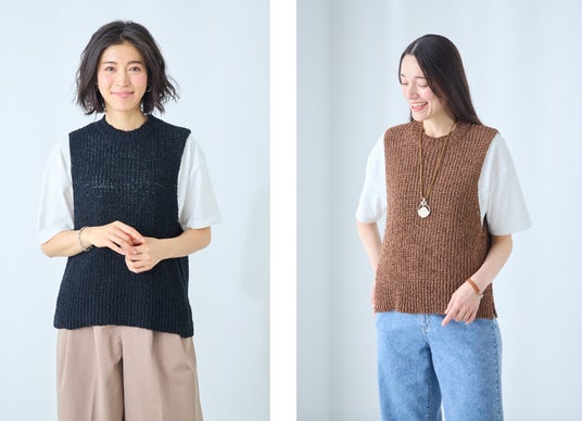 Tシャツ一枚だと心許ないけれど、アクセであれこれ盛るのは苦手…そんな声にお応えして、アクセ感覚で重ねられる軽くて涼しいベストとTシャツのセットです。ベストは腕がほっそり見えるようにアメリカンスリーブ風のカッティングを施しました。セットのTシャツやシンプルなトップスと重ねることで、コーディネートにアクセントを加え、すっきりとした印象を演出します。