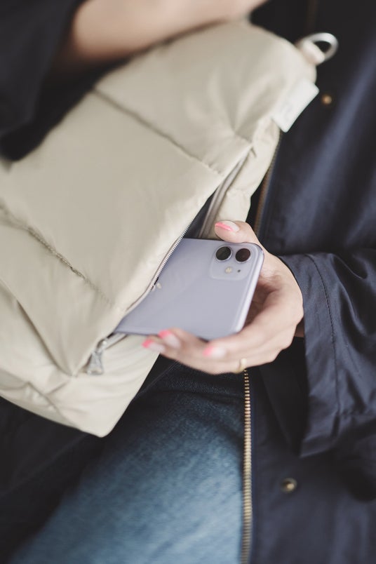 サブにもメインにも使えるサイズ感のデリ。長財布は立てても収納OK。 ふわふわの持ち心地で膝の上でもやさしくフィット。 ショルダーベルト付き 2WAY仕様。