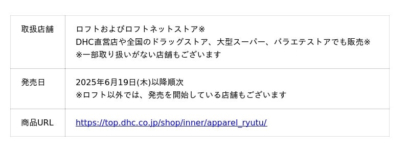 なお、DHCの着圧商品がロフトにて取り扱われるのは今回が初めてです。当社では、流通販路を通じて着圧市場に参入し、サプリメントとのシナジー効果によって毎日の健康をサポートすることで、人々の「しあわせを、ふつうに。」の実現を目指します。