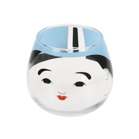 福助人形の顔をデザインした「福助さんゆらゆらグラス」
