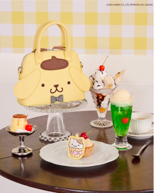 ポムポムプリンのお顔がそのままデザインされたショルダーバッグは、