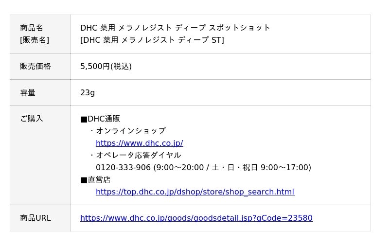 株式会社ディーエイチシー(本社:東京都港区、代表取締役社長:宮崎緑、以下:DHC)は、シミスパイラルに”抵抗(レジスト)“するという新発想で大人の深刻なシミに立ち向かう、薬用メラノレジストシリーズから、部分用美白※1美容液「DHC 薬用 メラノレジスト ディープ スポットショット」を2025年8月7日(木)に新発売いたします。