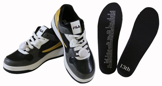 完成した光るオリジナルシューズとダンス部メンバーの名前入りインソール