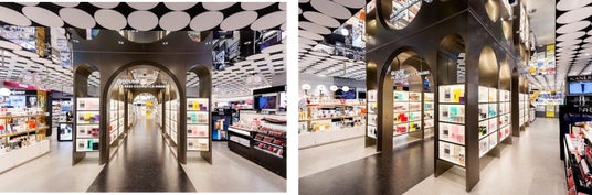 @cosme NAGOYAのために特注したトンネル型のコスメ棚。