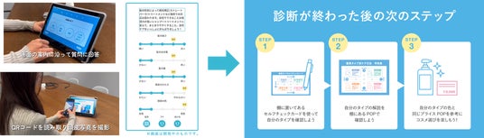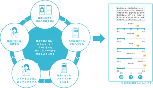ユーザーが、お悩みの入力や頭皮写真のアップロードをすると、スマホの診断(生成AI、画像解析AI)により、その場で自身の頭皮と髪の状態を“見える化”し、4つの分類からご自身の「髪質タイプ」が提案されます。