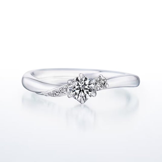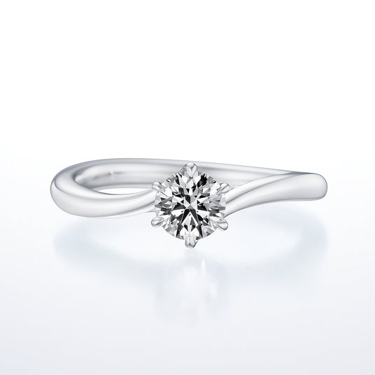 センターダイヤモンドが光を最大限取り込める繊細な造りによって、より一層ピュアな輝きを放ちます。シンプルを追求するシライシの想いと技術力で、コースティクスの「自然の美」をデザインに昇華させた究極のウェーブラインのエンゲージリングです。