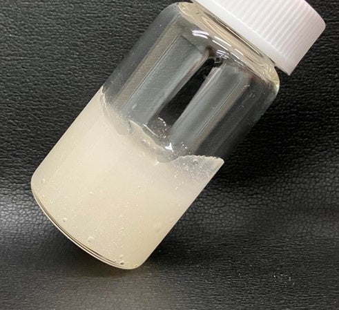 そもそも「セラミド」とは、角質層を構成する細胞間脂質の主成分で、細胞間脂質の約半分を占める油溶性の成分です。セラミドが不足すると水分保持ができなくなったり、正常なバリア機能を保持できなくなるため、肌の健康を保つために重要な成分ですが、加齢とともに少なくなる傾向があることがわかっています。不足したセラミド成分を補うためには、セラミドを配合した化粧品で補充する必要があり、角質層に浸透する化粧水にセラミドを安定的に配合する場合、これまでは石油系界面活性剤を配合することで可溶化する方法が一般的でした。また、従来の技術では、経時的な安定性を確保するためには、石油系界面活性剤の配合量を多くする必要がありました。当社では、界面活性剤の選択において、石油系由来のものを省くだけにとどまらず、皮膚の細胞間脂質や細胞膜と類似する分子構造を持つものを選び抜き、安全性や使用感を損なうことなく、界面活性剤を使用せずに化粧水にセラミドを配合する研究に取り組みました。