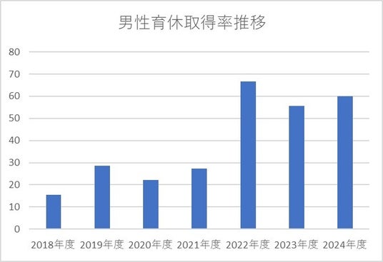 株式会社ナリス化粧品(代表者:村岡弘義 本社:大阪市福島区)は、社員が働きやすい環境を整備する中で2024年度の男性社員の育休取得率が60%、2023年度は55.6%、2022年度は66.7%で直近3年間の平均が60.8%となりました。また同期間中の該当する男性社員の取得期間は全員が3か月以上であることもわかりましたので、6月15日の父の日を前にこれまでの取り組みを報告します。