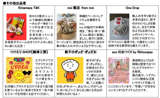 B0.5F 愛と狂気のマーケットでは、全国の「餃子好き」必見のイベント「狂愛!餃子ランド」第3弾を開催。33者が参加し、餃子モチーフの小物から本物の冷凍餃子まで、餃子の可愛らしいフォルムに癒される作品・商品が一堂に集結します。餃子にまつわる豪華賞品をプレゼントする抽選会も実施します。
