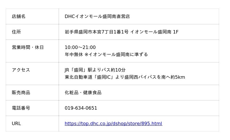 株式会社ディーエイチシー(本社:東京都港区、代表取締役社長:宮崎緑、以下:DHC)は、「DHCイオンモール盛岡南直営店」を美と健康をトータルサポートする新コンセプトショップへリニューアルし、2025年9月26日(金)に装い新たにOPENします。
