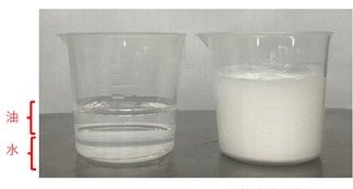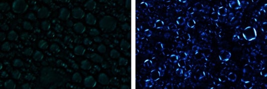 左:ラメラ造像でない一般的なクリーム 右:研究品(顕微鏡写真)