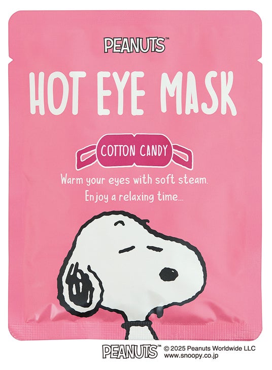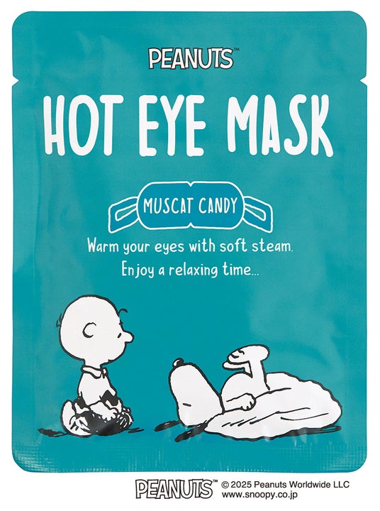 ピーナッツ ホットアイマスクは、スヌーピーデザインの「コットンキャンディー」、スヌーピーとウッドストックのデザインの「ミルクキャンディー」、チャーリー・ブラウンとスヌーピーデザインの「マスカットキャンディー」の3つのアロマとデザインで展開。