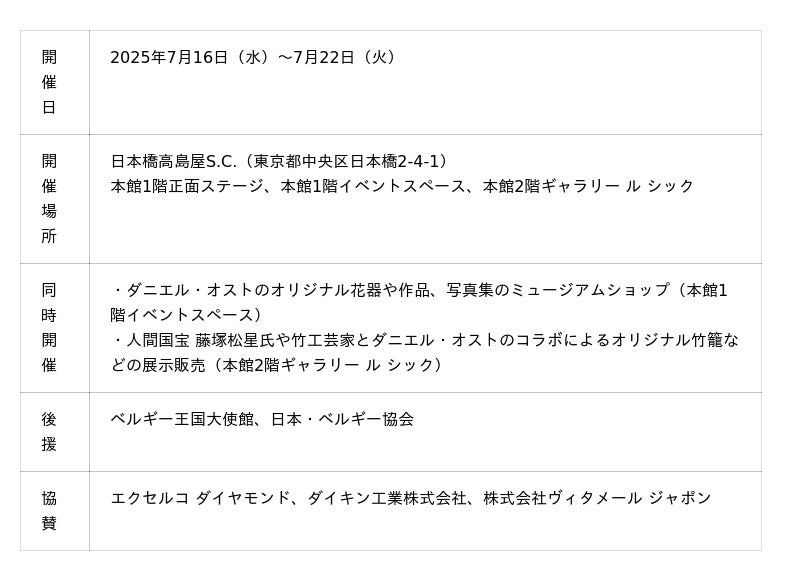「EXELCO DIAMOND(エクセルコ ダイヤモンド)」 (本店:東京・銀座)は、2025年7月16日(水)から7月22日(火)まで日本橋高島屋にて開催された、ベルギーを代表するフラワーアーティスト、ダニエル・オスト氏による「ダニエル・オスト〈舞妃蓮〉の舞い」に協賛いたしました。