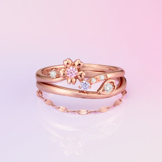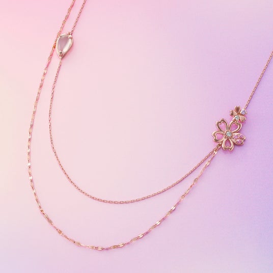 うつろいゆく春の気配を、肌にふれるジュエリーへ。桜と夕暮れの空が重なり合う一瞬の情景を淡いピンクやパープルの色調で、花びらが風に舞う姿を重なり合う軽やかな透かし模様に仕立てました。“出会いと別れ”、“ときめきと切なさ”が交錯するこの季節。その揺らぎにそっと寄り添うような、華やかでありながらも穏やかなラインナップです。ひとつ着けるだけで、胸元に春の香りを宿すようなデザインは、まるで心に咲く一輪の花のように、静かに彩りを添えてくれます。ふわりと風に舞う桜のように。うつろう日々の中でも、大切な瞬間をそっと記憶に刻んでくれるコレクションです。