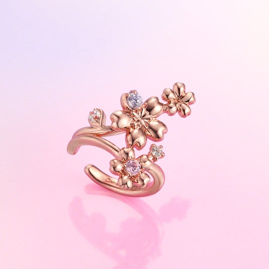 そよ風に舞う桜の花びらを描いた軽やかさが魅力のシリーズ。ふたつのモチーフが出会うような2wayネックレス、小ぶりながらも立体感があり、横顔を美しく引き立てるピアス、流れるラインが優しさを描くリングなど、小さな仕草から気品が宿るデザインが揃いました。ブルーやピンクのグラデーションストーンが、咲きはじめた桜のように、そっと彩りを添えます。