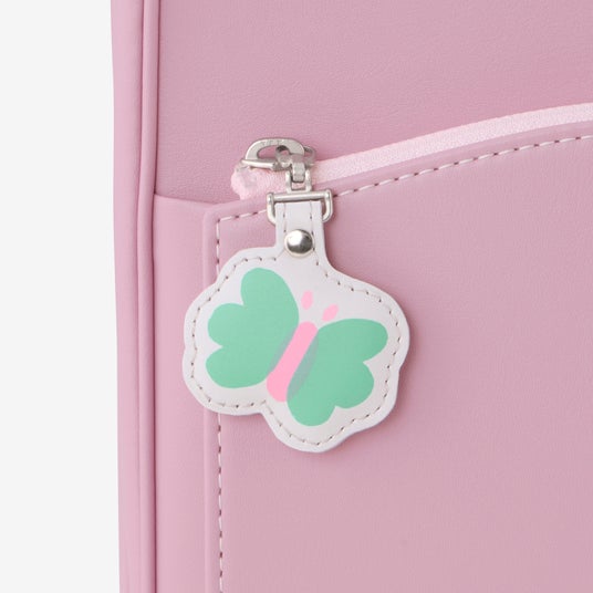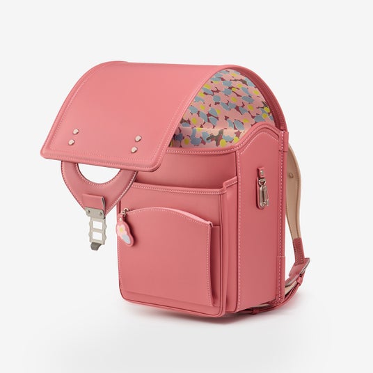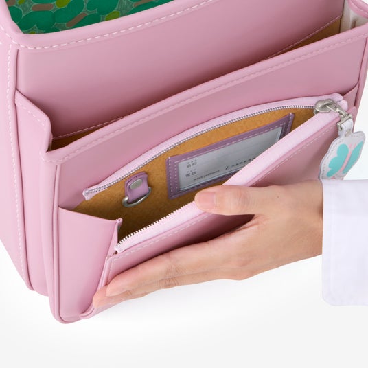 絵柄ごとに異なるチャーム付き前段ポケットの取っ手部分のチャームは、5種類の絵柄に合わせた特別仕様に。毎日が楽しくなるような細部までこだわった仕上がりです。
