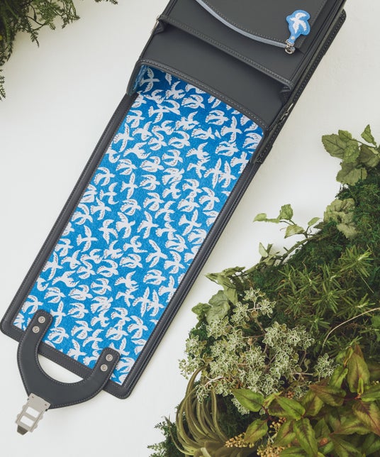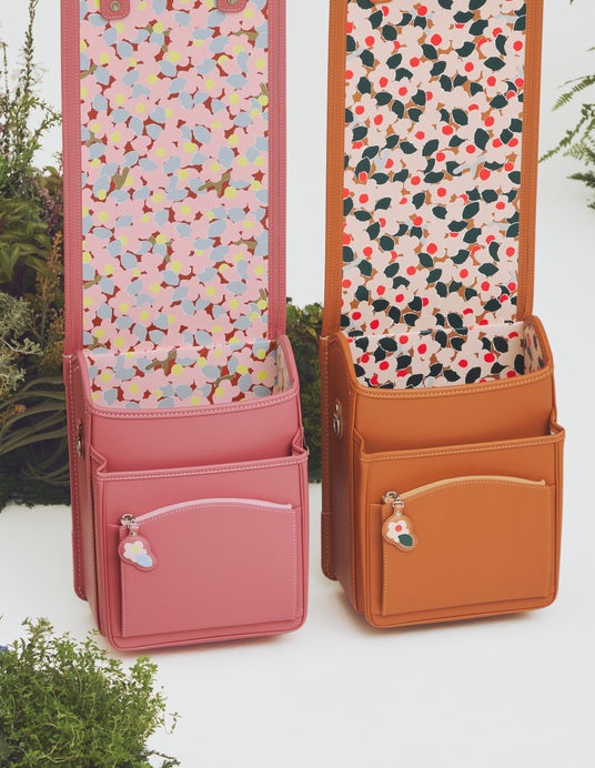 毎年異なる内装柄でデザイナーとともにつくりあげる、土屋鞄の「アトリエ」シリーズ。シンプルな外見ながら、ふたを開けると華やかな内装が広がるのが特徴です。こどもたちの感性を大切に思う気持ちに共鳴して始まった「ミナ ペルホネン」とのコラボレーションは、今年で5年目を迎えました。積み重ねた時間の中で生まれた信頼と響き合いを大切に、こどもたちの心に寄り添い、未来をやさしく彩るランドセルです。