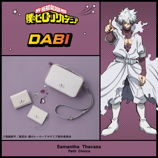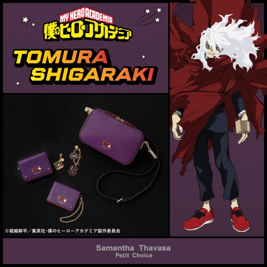 TVアニメ『僕のヒーローアカデミア』に登場する「緑谷出久」、「爆豪勝己」、「麗日お茶子」、「轟焦凍」、「死柄木弔」、「荼毘」、「トガヒミコ」をイメージしたお財布、パスケース、ショルダーバッグ、チャーム(全35アイテム)を展開。