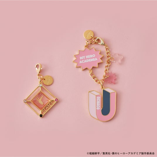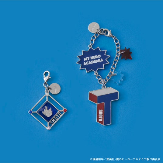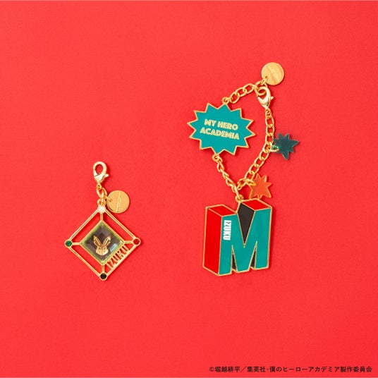 バッグチャームは“MY HERO ACADEMIA”の文字とキャラクターのイニシャルをデザイン。