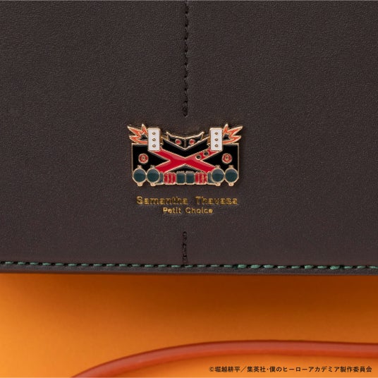 「爆豪勝己」をイメージしたブラックのボディにオレンジがアクセントとして入っており、両手に身に着けている籠手やヒーロースーツをモチーフにした金具を使用し、お財布、パスケース、ショルダーバッグとそれぞれをリンクさせたコレクション。