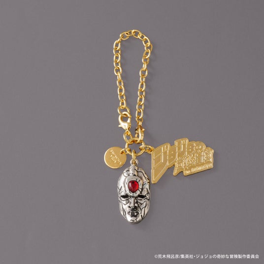 「ジョナサン・ジョースター」が研究していた謎の仮面で、物語のキーアイテムである「石仮面」を金具に落とし込んだバッグチャーム。