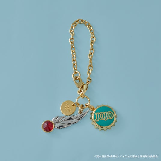 アニメ『ジョジョの奇妙な冒険 戦闘潮流』に登場するキーアイテムである「エイジャの赤石」を金具に落とし込んだバッグチャーム。