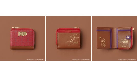 バッグのデザインとリンクした折財布は、裏面に「ジョセフ・ジョースター」のサインをプリント。