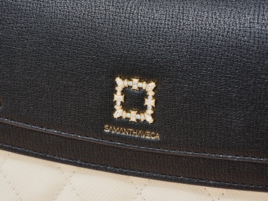 キルティングデザインと、キラキラした金具がキュートな印象に。
