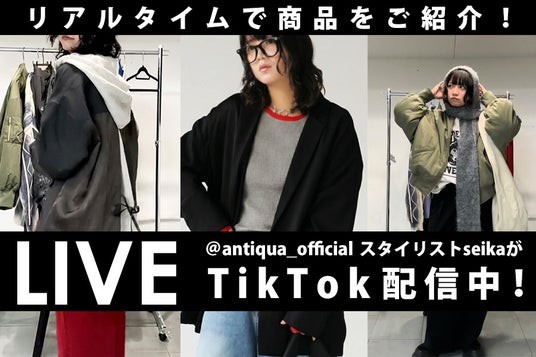 TikTok LIVEに出演するのは、antiquaの服づくりやスタイリングを日常的に手がけているスタイリスト。実際に商品を着用しながら、サイズ感、素材感、シルエットの特徴、