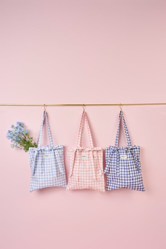 7月25日(金)発売 Cath Kidston 表参道店 / 京都ポルタ店 / 公式オンラインストア(https://cathkidston.jp/)▪︎リボントートバッグ Painted Gingham Pink/Sax/Navy 各5,500円(税込)