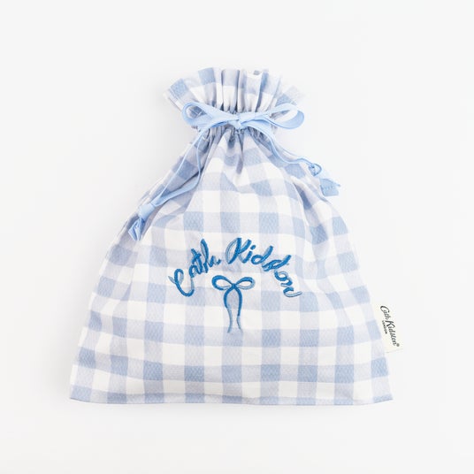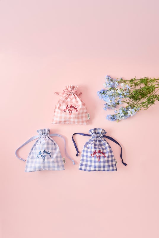 ▪︎ドローストリングポーチ Painted Gingham Pink/Sax/Navy 各2,200円(税込)