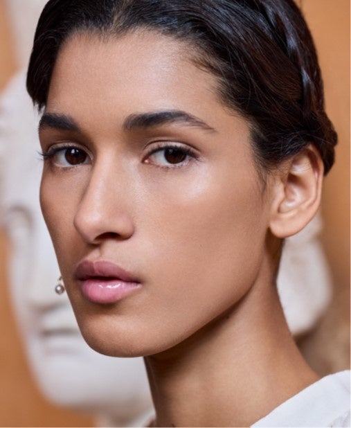 パールのように輝く肌を作り上げるため、まずはレ パッチ ユー (公式オンライン限定品)で肌を整え、ディオール カプチュール ル セラムを塗布します。ディオールスキン フォーエヴァー スキン パーフェクト スティックを使用し、さらにディオールスキン フォーエヴァー グロウ ルミナイザー 06 オパール シークインが虹色に輝き、美しい色合いを際立たせます。最後にディオールスキン フォーエヴァー スキンコレクト コンシーラーを使い肌を仕上げます。