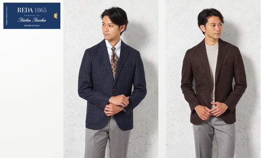 REDA社の素材を採用し、羽織るだけでワンランク上の上品で大人な印象を演出してくれるジャケットは、滑らかな肌触りと季節感を楽しめるウォーム感がポイント。クラシコイタリアベースにしたしなやかな仕立てに、ブリティッシュなディティールを落とし込んだハイブリッドなデザインを採用しています。ベーシックカラーのネイビー、シックなグレー、シーズンムードが楽しめるカラーのブラウンの3色展開です。