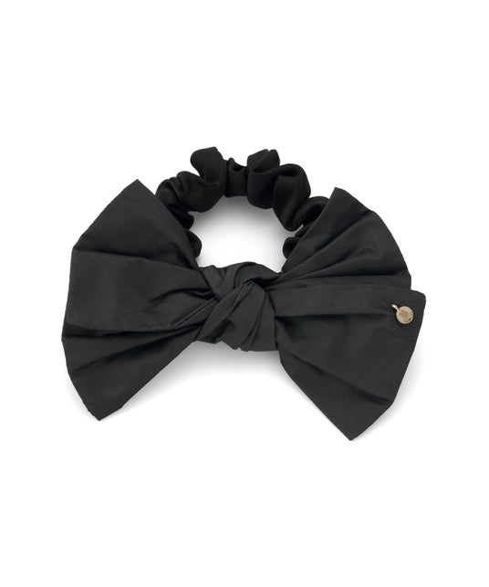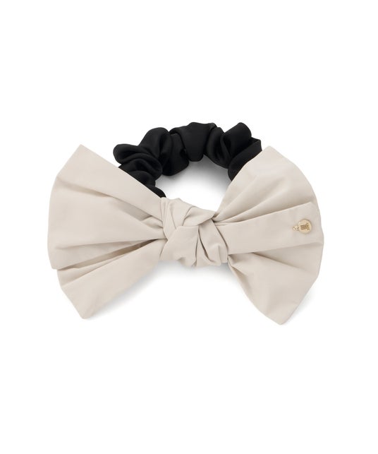 インパクトあるサイズ感のシュシュ。しわ感のあるダブルリボンデザインが甘くなりすぎず、さっと結ぶだけで抜け感のあるヘアスタイルに。洗いざらしのような質感のホワイト・グレーと、艶感のあるネイビーの3色展開です。