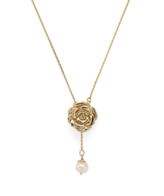 揺れる淡水パールとの組み合わせが、フェミニンで優しい印象のローズモチーフシリーズ。ネックレスの裏面はメタルで表現した立体的なローズデザインで、気分に合わせてリバーシブルで楽しめます。肌馴染みのよいベージュピンクとブルーの2色展開です。