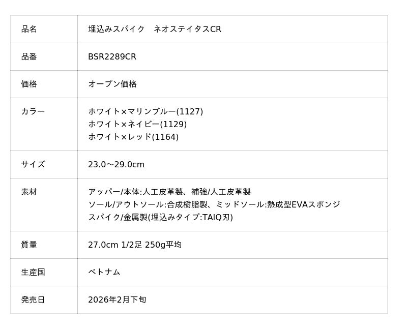 アッパーはシンプルなデザインでホワイト×マリンブルー、ホワイト×ネイビー、ホワイト×レッドの3色展開。