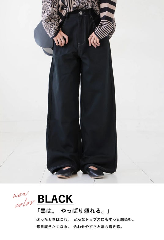 美しい落ち感と立体的なワイドラインが、履くだけでコーデ全体のバランスを整えてくれる“至極のワイドデニム”です。