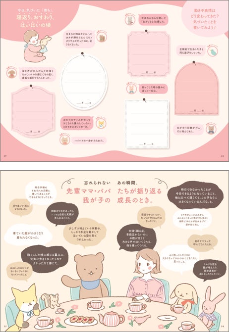 リトルベビーを育てた先輩ママ・パパ、約1,000名からのアンケート回答をもとに子育てのヒントや応援の声を収録し、赤ちゃんの成長をその子のペースで記録できる工夫も盛り込みました。