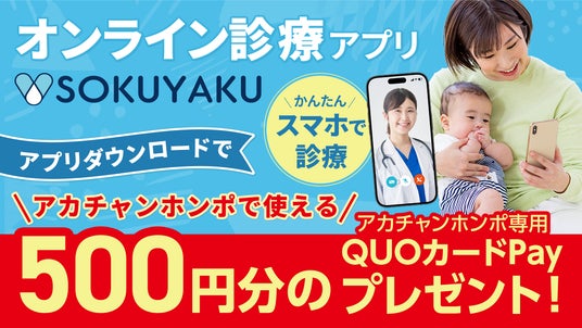 株式会社赤ちゃん本舗(本社:大阪市中央区 https://www.akachan.jp)と、ジェイフロンティア株式会社(本社:東京都渋谷区 https://jfrontier.jp/ )は、オンライン診療アプリ「SOKUYAKU(ソクヤク)」の会員登録を行うことで、アカチャンホンポ全128店舗で利用可能なクーポンを配布する共同キャンペーンを2025年8月1日(金)より開始したことをお知らせいたします。