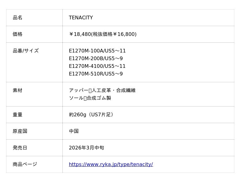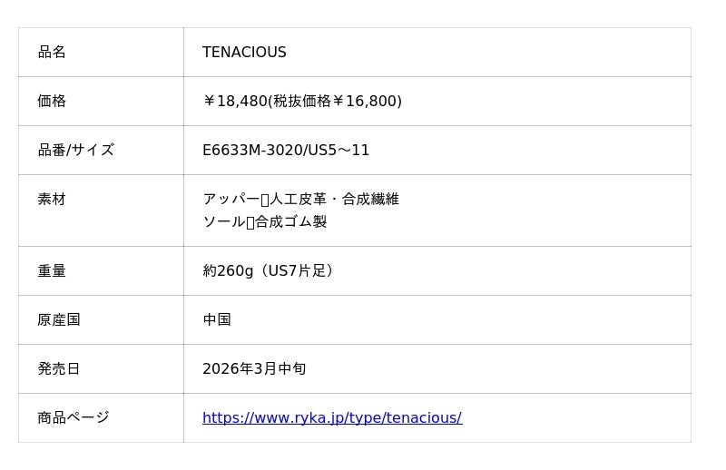 ゼット株式会社(本社/大阪市天王寺区、代表取締役社長/渡辺裕之)が取り扱う『ryka』(ライカ)ブランドより、ダンスエクササイズモデルで人気のシューズ【TENACITY】(テナシティ)および【TENACIOUS】(テナシオス)のニューカラーを2026年3月中旬より発売いたしました。