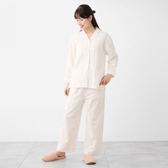 ふんわり軽い綿100%のWガーゼセットアップです。肌触りが優しく吸水性も抜群で、寝ている間も快適にお過ごしいただけます。
