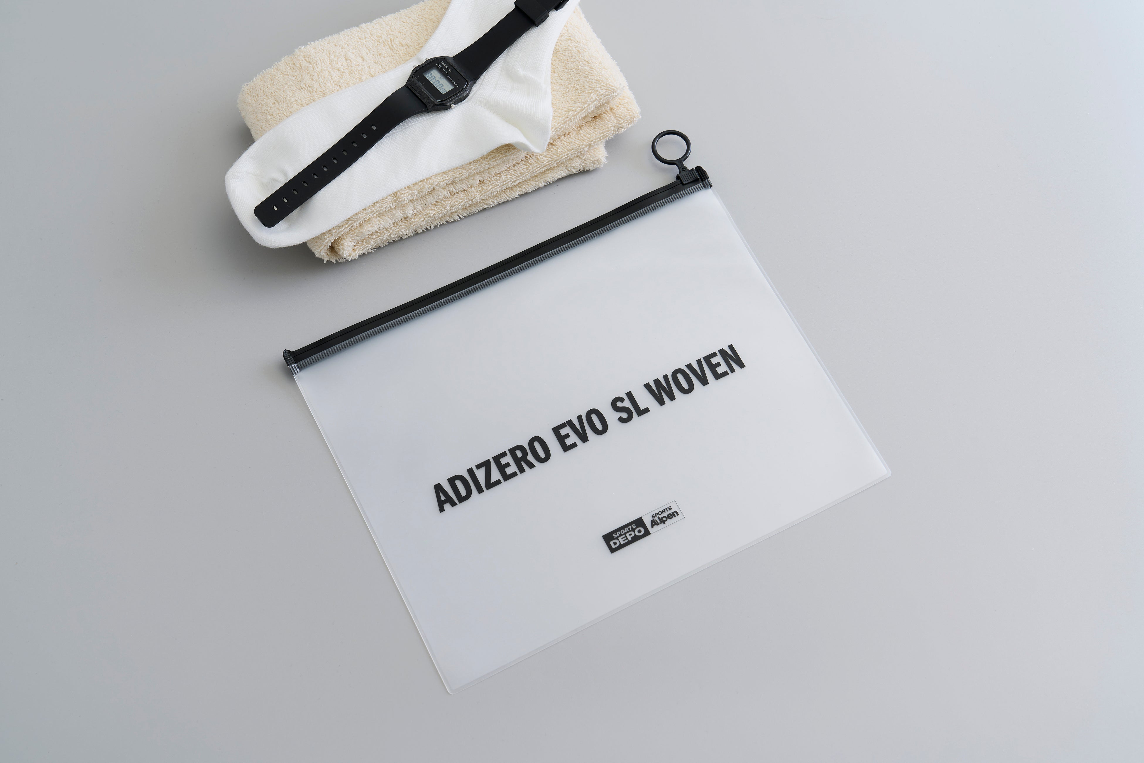 ADIZERO EVO SL WOVEN をお買い上げの方に先着で限定クリアポーチをプレゼントいたします。
