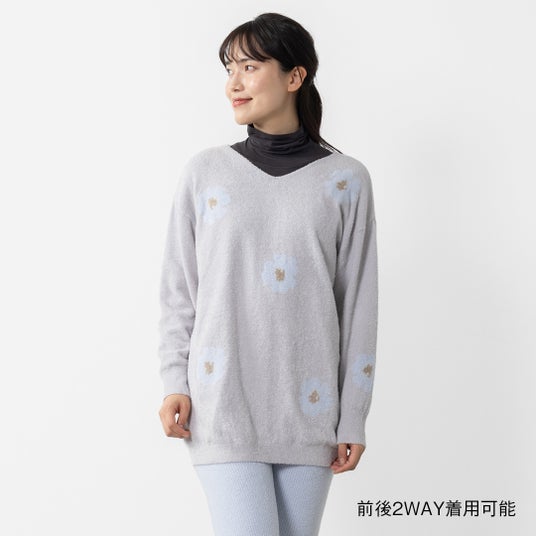 着用した瞬間に感じる贅沢な滑らかさとふわっとした毛足が特徴の糸を使用した、チクチク感なく素肌に気持ちいいカーディガンです。カーディガンとしてはもちろん、プルオーバーとしても前後どちらも着用可能。品のあるお花デザインで気分も上がります。